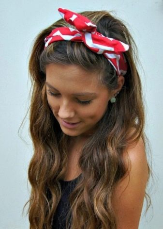 - Dressings. This element is initially wider than satin ribbons. Bandages hold curls, preventing them from getting into their eyes. Add styling volume, playfulness. These accessories are fixed on the side in the form of a bow.