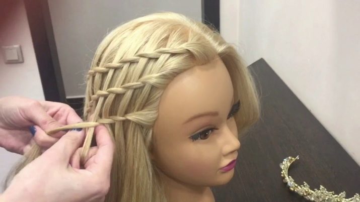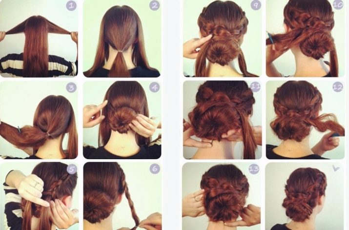 - repeat similar actions, picking up the lower strands, to the center of the head;