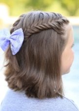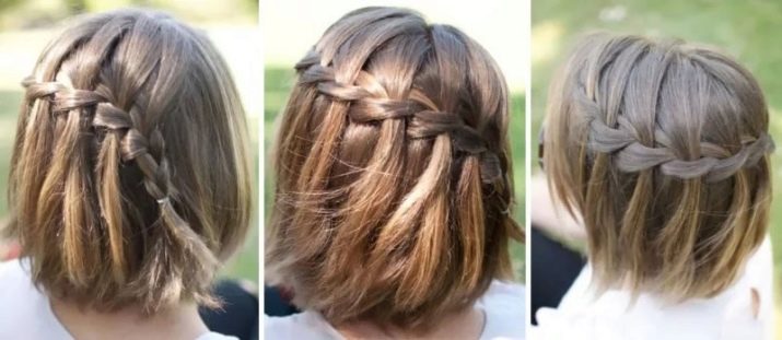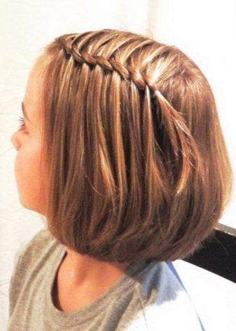 Weaving with a waterfall gives the short haircut attractiveness and delicate elegance. Such a hairstyle will allow a schoolgirl to stand out among her friends.