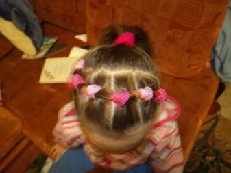 A little witchcraft with ponytails, and in a kindergarten you can show a fashionable hairstyle.