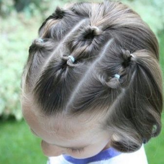 Only 3 ponytails will make the little girl a real beauty. Even thin, very thin hair is enough to create such a cutie.
