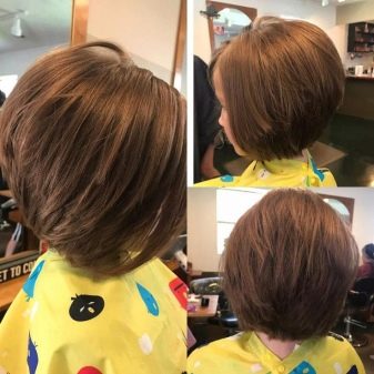 In addition to the classic version, when the hair is cut to the same length, you can make a bob-car with strands shortened from layer to layer on the back of the head.
