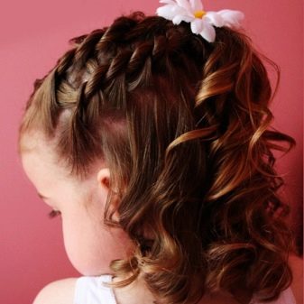 There is nothing easier than the owner of light curls to stab the front strands with a hairpin with a flower, and an elegant hairstyle, emphasizing the tenderness and mischief of the child, is ready.