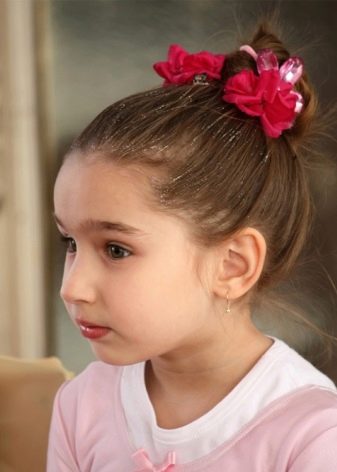 The festive hairstyle can be given through the use of bright hairpins, headbands, tiaras, sequins, bows.