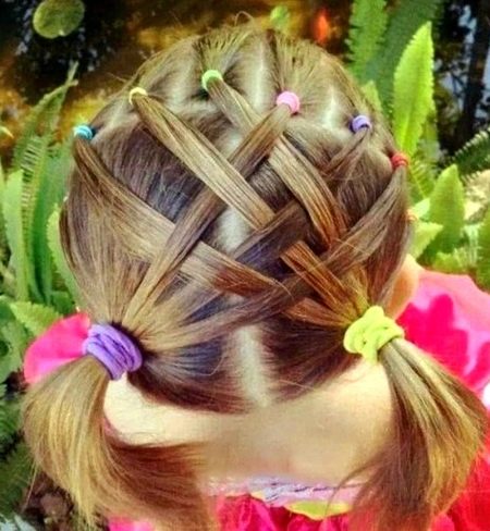 A mesh of hair turns the girl into a little queen. Moreover, such a hairstyle does not interfere with the active movement.