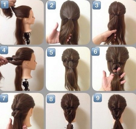 If the texture of the hair allows, you can give the bundle volume. First, make a tail on the back of the head, divide it into several strands. Wrap each one around itself, make a revolution around the base of the tail and stab it with “invisibility”. It is advisable to attach snakes tightly to each other.