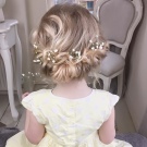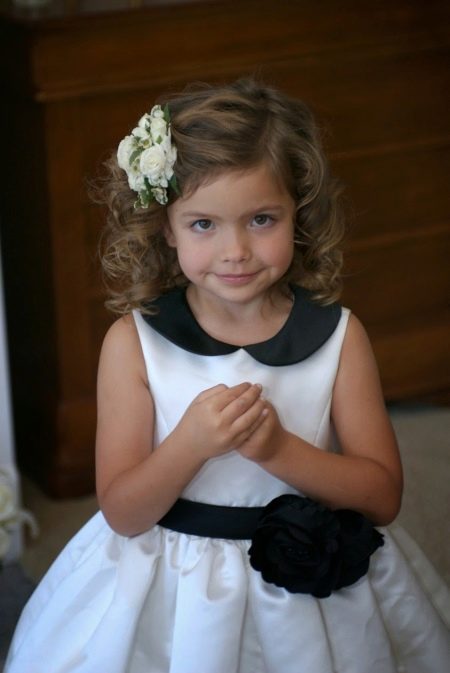 Finally, the last example clearly shows why the princess, especially the little one, must be with curls. The exact location of the parting is left to the discretion of the parents, jewelry, too, but the curl itself is a factor that very decorates the child.