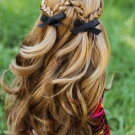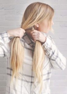 When weaving the second half, you should constantly check its shape with the first, correcting significant flaws in time to a state of subtle. In a place where the two halves should be joined, tie them together with an elastic band. The remaining hair can be left loose, braided into a common braid or decorated with ribbons.