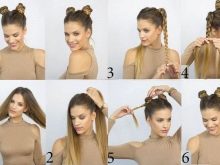 The position of future “horns” on the head is determined by the creator of the hairstyle, however, it is important to maintain symmetry, if the high hairstyle does not want to hold on, strengthen the fastening with the second rubber bands for each side.
