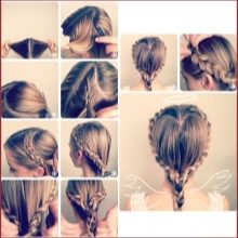 The features of the formation of such a hairstyle depend on the final location of the "heart", but for example we will consider its location on the back of the head. First of all, a parting is formed from the center of the forehead to the back of the head, one of the side parts of the future hairstyle is collected with an elastic band so as not to interfere with the preparation of the first side. From the hair that is left loose, approximately from the top of the head, a French braid is formed, weaving strands into it only from the outside - this will make it bend in the right direction, as a result of which it will begin to resemble a little heart. Naturally, only half of the “heart” will be obtained from half the hair, therefore, when the desired figure is reached, it's time to tie a pigtail with an elastic band and do the same manipulations on the other hand.