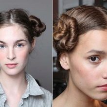 Tightness, as well as the exact location of the "horns", is determined arbitrarily - you can form some kind of nest from fairly freely pulled hair, while others prefer to braid each tail into a pigtail, and only then wind it around the base. At the same time, “horns” of owners of very long hairs are usually distinguished by increased tightness, and with a relatively short length it is better to leave them a certain freedom, which will add a three-dimensional hair style.