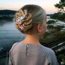 In fact, the beam can be located almost anywhere - it can be located in the back center, but it often makes it asymmetrical, placing it in the lower back of the head closer to the left or right side. This arrangement allows you to more effectively harmonize with the bangs and create a holistic image of the girl, and also allows some kind of variation in appearance.