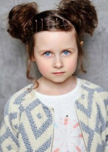 "Horns" is considered to be such a primitive hairstyle that in most cases they are done only by the smallest girls, and even then only because of extremely short hair. In practice, this hairstyle can be done neatly and beautifully, beating the length of the hair and using third-party jewelry - as in the second photo.