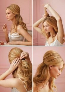 The huge advantage of this particular hairstyle is that it is extremely simple. On both sides of the head, the same amount of hair is taken away, which is located in the frontal part of the head. These strands, as if clinging to the head with the main part of loose hair, are found on the back of the head, where they gather. As already mentioned, this can be done in any of the possible ways, you can even decorate the place of hair collection with any special decoration. Those hair that remains loose can be curled in curlers or curling irons.