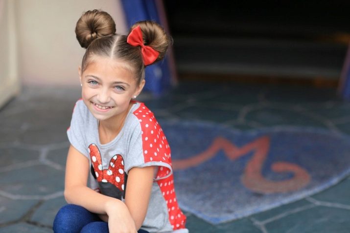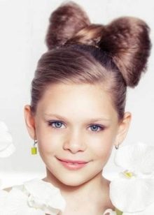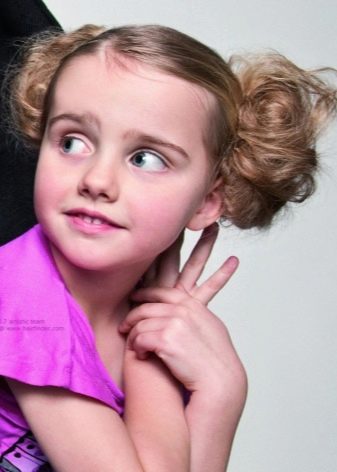 Part of the hair is not forbidden and left without twisting its entire length into “horns” - then a braid or straight hair is wound on the base until a certain point, marked with another elastic or bow. At the same time, young children are usually not advised to pull their hair tightly - it is better to focus on fixing them with the ability to easily fix broken strands at any time.