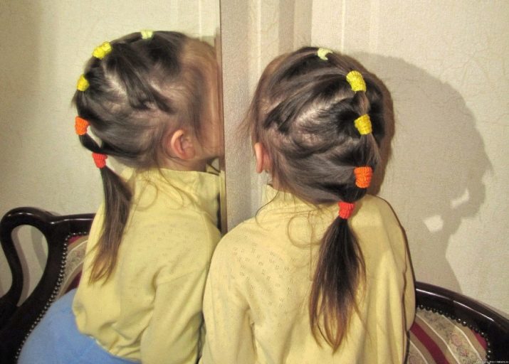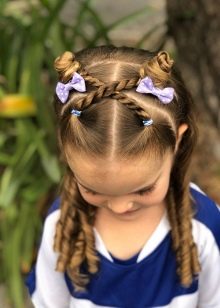 Little girls will definitely appreciate the “dragon” hairstyle with tails fixed with beautiful elastic bands.