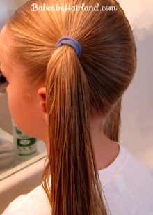Free locks from the bottom line are connected in a single tail with the hair that was pulled to the side at the very beginning.