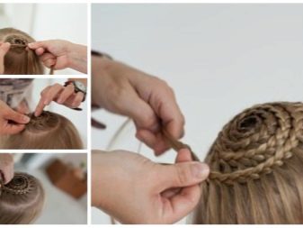 At home, having trained a couple of times, you can learn to make various variations of the exquisite hairstyle “basket”. In the first case, the process begins with the distribution of hair around the entire circumference of the head. Next, starting right on the top, begins circular weaving. It is more convenient to implement it, adhering to the technique for the French braid, weaving additional strands only from the outside. Work goes in a circle until all the strands are involved.