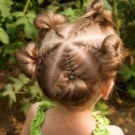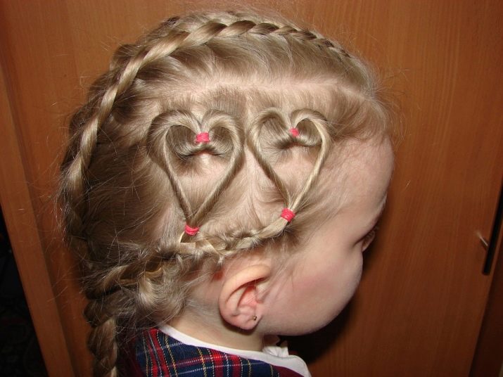 The following instruction will help you to make an interesting hairstyle out of banal funny ponytails. Twist the tails once, split each in half and twist the harnesses out of the halves. Connect them down to get hearts. For greater reliability, grab them with invisibility.