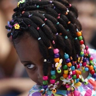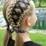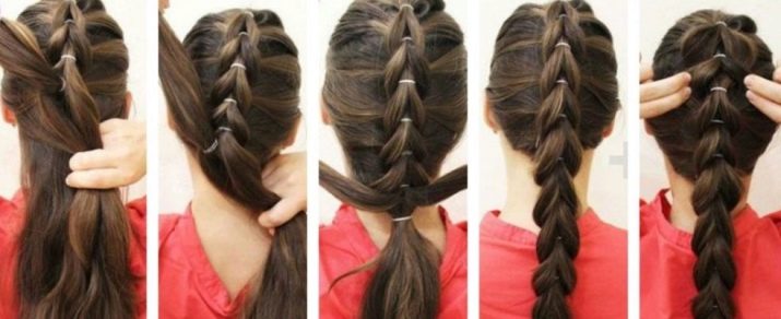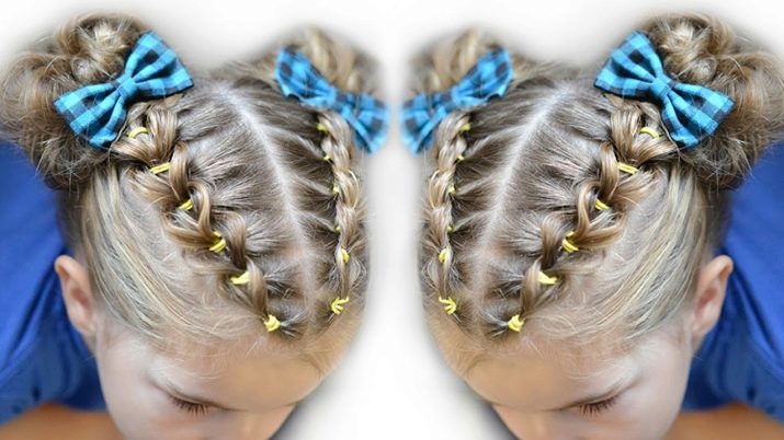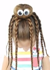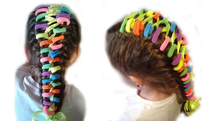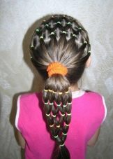 More intricate hairstyles are available for hair owners. For example, numerous funny ponytails can be combined with rubber bands so that a semblance of a “net” is formed, and give pigtails an intricate shape.