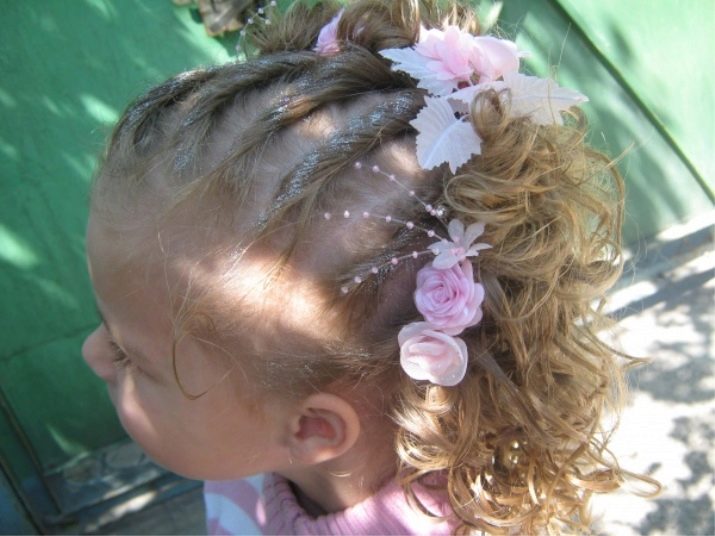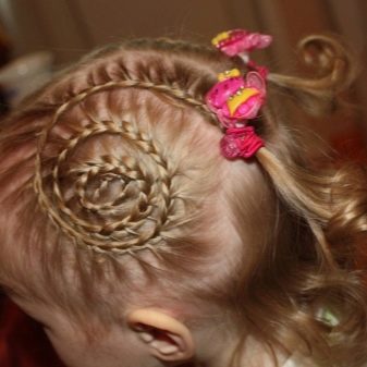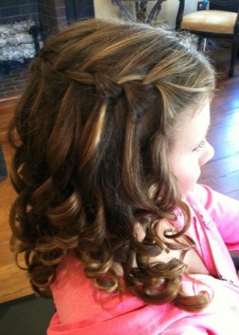 Instead of a simple pigtail, try braiding the French, because long curls allow you to do this. True, this hairstyle looks better on the hair of babies older than 5 years, when the hair becomes at least a little more voluminous.