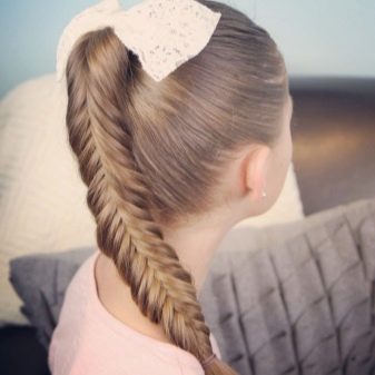 Despite such a funny name, it’s actually not a tail, but a braid like a spikelet. Such a masterpiece is enjoyed not only by elementary school students, but also older schoolgirls.