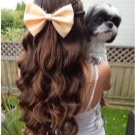 Such a hairstyle looks especially impressive if you curl the ends of the curls slightly, and decorate the place of fixation with a thin ribbon or a hairpin in the shape of a bow.