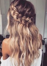 - the hair collected on the back of the head is braided in any arbitrary technique, the “fish tail” or the back spikelet looks best;