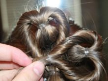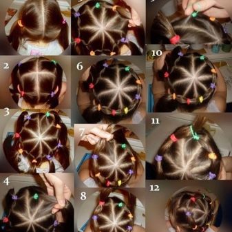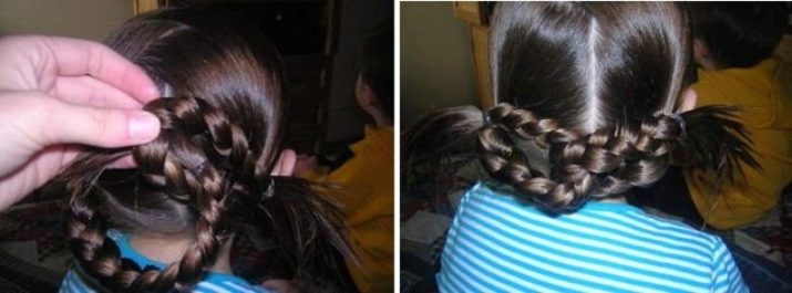 - Each section must be formed into a tight tourniquet so that it reaches about the top of the head, after which it is fixed with a soft elastic to match the color of the hair; you don’t need to hide the tail.