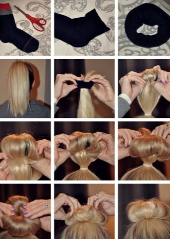 For a young princess with long or medium curls, it is best to design a traditional classic bunch. To do this, you need a foam roller, and if it is not at hand, you can use the old thick sock, best terry.