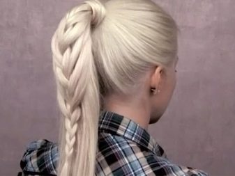 - Gently oblique braid the tail, gradually adding strands to it from the bulk of the hair.