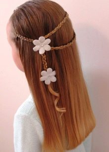 If the girl’s hair is not long enough for ponytail and braiding, or if you simply intend to leave your curls loose, then you can pay attention to such an interesting option as Malvinka.