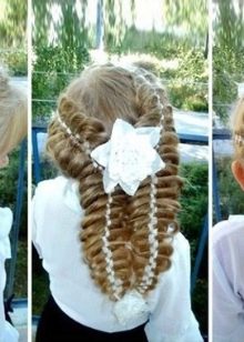 Perhaps one of the most popular hairstyles for the school ruler is a braid with a ribbon, as well as its various variations - you can change the number of braids and diversify their weaving options, for example, the variant that is popularly known as "fish tail". It is not difficult to build it.