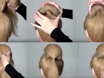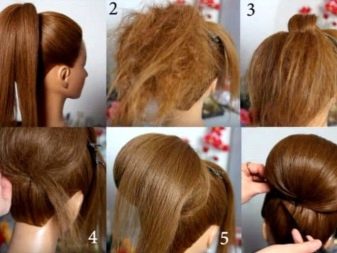 First of all, a high tail is assembled on the crown, which is then braided into a braid. Braided hair must be wrapped around the elastic, removing the tip into the bundle. To form a larger volume, you can sub-release several links.