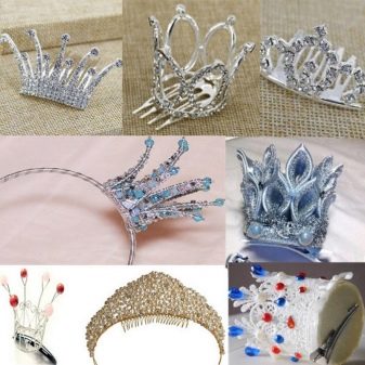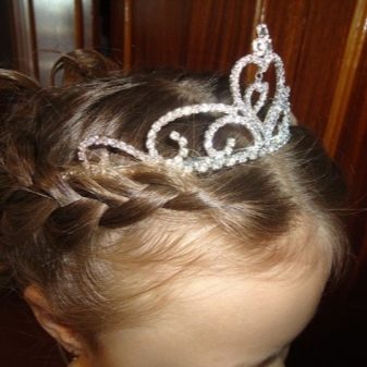 When creating hairstyles with a diadem, the accessory itself is put on last and represents an appropriate addition. Most suitable for the crown are the rollers twisted from the side curls, capable of holding the jewelry or a “little girl”. The horizontal crown is more combined with tails and its variations, and the vertical one with styling “waterfall”, when only the upper part of the hair is braided. The larger the crown, the easier the styling should be.