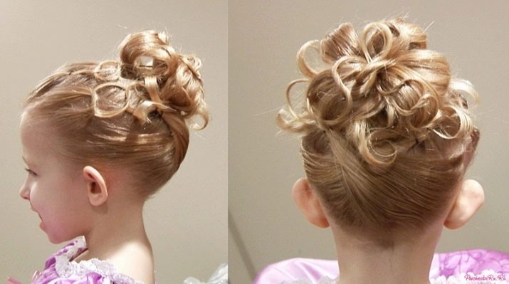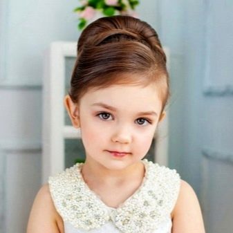Having purchased a ready-made roller in the store, the little princess’s hair will be able to be collected in a “babette”. It is preliminary recommended to give hair extra volume with a nap on the back of the head.