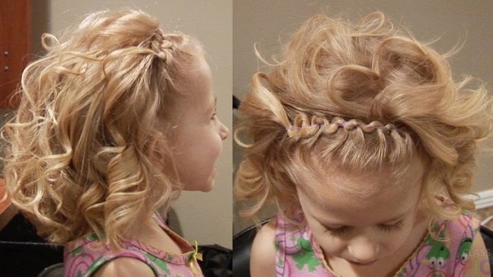 By the way, short hair is easier to style if you wash your hair in the evening. It is recommended to choose a varnish for fixing a special one for children, characterized by a safe composition and the presence of sparkles. For a small comb diadem, a flagellar hairstyle is suitable. The bangs or just the front locks are divided into eight parts, after which they are twisted and fixed in the direction to the crown. In the second case, the entire volume is first divided by a direct parting, and eight strands are separated from one side from the parting. The adjacent strands along the length of 3 or 4 centimeters must be twisted in different directions, and then connected together with an elastic band.