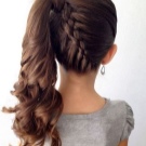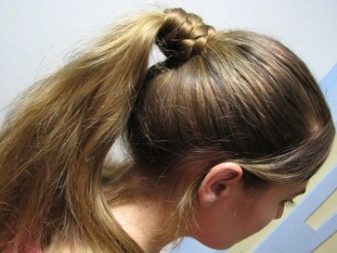 The tail is interesting in what is done in a matter of minutes. This hairstyle is good in itself, but even it can be dressed up. If you select three thin strands from the tail, and braid along the length of the tail, adding a new one from the left or right side along the tail, you can get the tail inside the braid. At the bottom it remains to fix the hair with an elastic band.