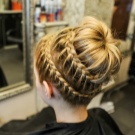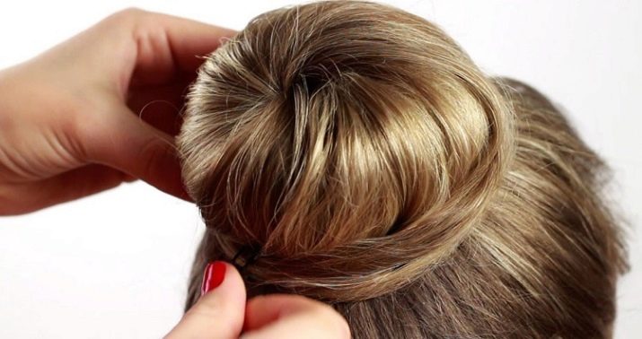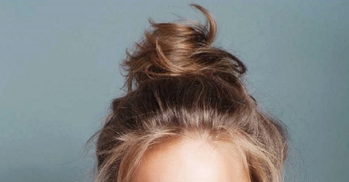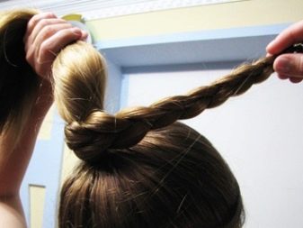 Comb and divide the hair into two “blocks” horizontally so that the upper one is slightly smaller in volume than the lower one. Twist the upper part into a bundle and, turning counterclockwise, make a bunch at the desired height. Stab with studs. From the remaining strands, also create a tourniquet and wrap it around the bundle. Hide the tip of the hair and fix the “composition” with invisibility.