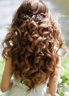 - Long hair allows you to create volumetric bundles and curls, creating a unique composition of strands. If you use hairpins with jewelry, this gives completeness to the festive look.