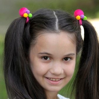 A good option is to make a hairstyle of two tails. You can fix them at one or another height using an elastic band. This hairstyle is good for every day and for a children's party.