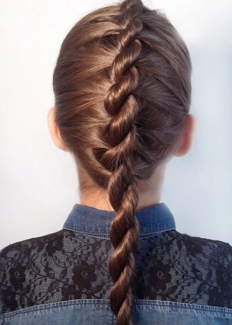 - You can braid a braid from twisted strands. To do this, divide the hair into two parts with a vertical parting. Without letting go, twist them several times to make weak harnesses. One part needs to be twisted clockwise, and the other - against it. Now twist the harnesses together and fix with an elastic band. To prevent strands from messing up, spray on hair with varnish.