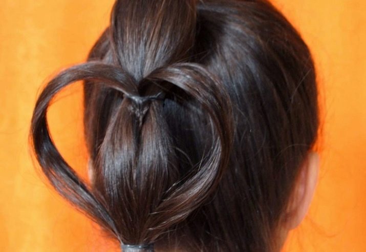 - An ordinary tail can be improved by creating a “heart” decoration on it with rubber bands. You can perform such a hairstyle without any instructions. Just look at the photo.