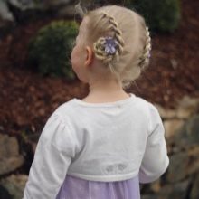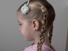 - Girls go with hairstyles created by their parents throughout the day. Active games, children's fun and exercise can negatively affect the accuracy of styling. Therefore, in order to fix the hair and additionally decorate the braid, it is necessary to use various hairpins, hairpins, invisible, rubber bands. It is important to note that the fasteners for baby hair should be made of plastic material.