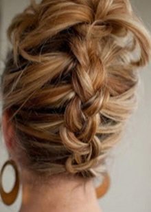 - Braid weaving occurs according to the technology of the French spikelet, only the grabbing of new parts of curls is done not from the sides, but from the bottom.