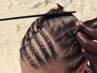- Each individual “African” pigtail in thickness is very thin. Curls are selected by a comb with a sharp end. The selection of strands begins with a parting and weaves in the direction of hair growth.