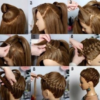 This weaving method resembles the classic version of the 70–80 years with two pigtails on the sides. But thanks to some modernization and the introduction of additional fixing elements, such an unusual basket is obtained.