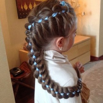 When visiting a children's corner in shopping and entertainment complexes, you can meet girls with a huge variety of types of braiding. Quite often, these are individual improvisations of parents. And yet there are stylings made exclusively by the hand of the master.