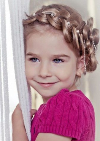 - Today there is a huge selection of options for weaving braids, thanks to which an unusual image of a little girl is emphasized. Moreover, each separate type of styling is used for going to school or for a matinee in kindergarten.