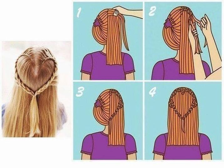 - Approximately 12 cm from the beginning of the hairline should be left on the right and left sides. The strands are divided into lines, thereby creating the upper part of the "heart". The shape of the bends can be created as you wish.